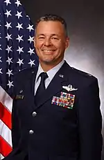He joined the United States Air Force in 1987, after graduating from the University of Michigan and became a commissioned officer with the rank of second lieutenant. In 1999, he completed a course called "Programa Avanzado de Administracion de Empresas" (Advanced Business Management Program), of the "Escuela de Administracion de Negocios para Graduados" (Graduate School of Business Administration) in Lima, Peru. That same year he graduated from the Air Command and Staff College.[2] His experience as a pilot include more than 2,000 flight hours. Included among his flight hours are over 200 combat hours and combat support hours. He has flown the B-52G, B-1B, B-2A, F-15, F-16, AT-38 and MiG-15.[1][4][3]
