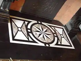 Since Renaissance the "Noir Belge" marble was widely used as a decorative construction material. Due to its immaculate velvety black appearance and its remarkable high gloss, it was preferred by artisans across Europe. It became exceedingly widespread since it was preferred as the deep-black background for the colourful Intarsia or Pietra dura works from the Florentine Medici workshop founded in 1588. "Noir Belge" was even used by Italian artisans in the intarsia decoration of the Taj Mahal in India.