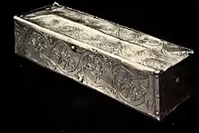 The Noli me tangere casket (Noli me tangere: Latin for "Don't touch me") was a small silver-gilt casket made in 1356 for the Aachen Cathedral Treasury. It measured 15.2 cm in length, 3.7 cm in height and 4.8 cm in width. The casket was kept in the Marienschrein together with the key relics of the cathedral until the nineteenth century and the casket remained in the possession of the cathedral treasury until its destruction during the Second World War.