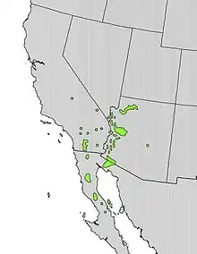 In Arizona, Nevada, and southern California, Nolina bigelovii is especially prevalent along the Lower Colorado River Valley, especially in the western Arizona Sonoran Desert, but also regions of the mountains of southern California's Colorado Desert. The species ranges in the Peninsular Ranges of Baja California-(the north state), as well as Isla Ángel de la Guarda in the northern Gulf of California. Its northeast range extent is in the Grand Canyon of Arizona.[1]