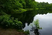 Noon Hill is a 204-acre (83 ha) open space preserve located in Medfield, Massachusetts and centered on 370-foot (110 m) Noon Hill, a prominent summit and scenic vista. It is managed by the land conservation non-profit organization The Trustees of Reservations and offers 4.5 miles (7.2 km) of trails available for hiking, horseback riding, mountain biking, and cross country skiing.[1] Oak-hickory forest, wetlands, vernal pools, steep ravines, boulders, and rocky ledges characterize the preserve. Noon Hill is a link in the 200-mile (320 km) Bay Circuit Trail. Holt Pond, a constructed mill pond, is located on the property.