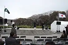 ![]() Noor Muhammad addressing in a Pakistani festival in Ueno Park, Tokyo | |