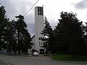 The church was completed in 1962 and was restored and expanded with a church parlor in 1982. The facade is in white bricks and has a characteristic church tower which can be seen from large parts of the city of Oslo. It is one of the largest churches in the city.[2][3][4]