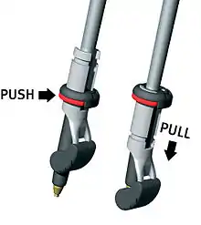 Nordic walking poles are significantly shorter than those recommended for cross-country skiing. Nordic walking poles come in one-piece, non-adjustable shaft versions, available in varying lengths, and telescoping two or three piece twist-locking versions of adjustable length. One piece poles are generally stronger and lighter, but must be matched to the user. Telescoping poles are 'one-size fits all', and are more transportable.