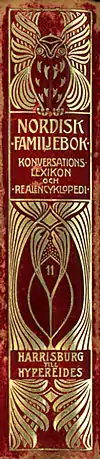 Nordisk familjebok (Swedish: [ˈnǔːɖɪsk faˈmɪ̂lːjɛˌbuːk], "Nordic Family Book") is a Swedish encyclopedia that was published in print from between 1876 and 1993,[1] and that is now fully available in digital form via Project Runeberg at Linköping University. Despite their considerable age and relative obsolescence, the public domain editions of the encyclopedia remain important reference works in Finland, especially on Finnish Wikipedia.