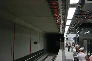 The station is located on the border of the Nuremberg districts Bielingplatz and Wetzendorf and extends underground in east-west orientation across the Nordwestring (part of B4R) between Bielefelder Straße and Heimerichstraße. The building is located in a simple depth (7.70 m) below the earth's surface. At each platform end there is an elevator, as well as stairs and escalators, which are a direct link to the surface.[2] Behind the underground station, under Bielefelder Straße, there is a 170 m long, double-track tunnel, which is used as a parking or turning facility.[3]