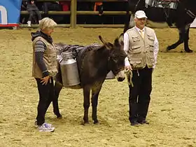 The Norman donkey, French: Âne Normand, is a breed of domestic donkey from Normandy, in north-west France. It is found mainly in the present-day Lower Normandy and Upper Normandy regions, and is also present in Brittany and the Pays de Loire. It is the smallest of the seven recognised French donkey breeds.[4] It was formerly used as a pack animal in agricultural work, mainly for carrying milk churns; it is now used in leisure sports and tourism. The breed was recognised by the Ministère de l'Agriculture, the French ministry of agriculture, in 1997. The stud book is kept by the Association de l'Âne Normand, an association of breeders.[5]