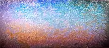 Zammitt referred to Elysium as a walk-in painting, a separate reality or virtual spirituality. It was to be a site specific installation consisting of a room with four large walls seamlessly painted in ultra-violet light sensitive pigments and shown in ultra-violet light; an entirely black-lit, luminous, enclosed environment. The Elysium was partially realized with one 13’ by 35’ wall painted in Zammitt's studio model. Proposals for space and sponsorship to create a full scale Elysium were submitted to three institutions without success.