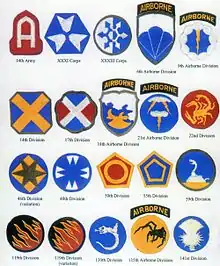 Shoulder patches were designed for units of the fictitious First United States Army Group under George Patton.