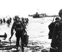 Into the Jaws of Death: Men of the 16th Infantry Regiment, US 1st Infantry Division wading ashore on Omaha Beach on the morning of 6 June 1944