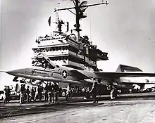 An A3J-1 (later A-5A) during trials on USS Saratoga, 1960