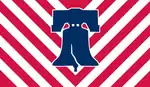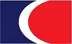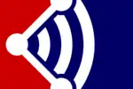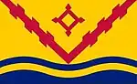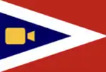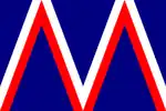 The association's flag consists of a large white "V" (an inverted chevron) separating a blue triangle above from two red triangles on either side. The length of the top side of the blue triangle is the same as the width of the flag ("width" is the vertical dimension when flying from a flagpole). The flag proportion is 2:3.