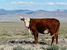 Australian rangelands cover approximately 75% of the nation's land mass. Characteristically arid and semi arid the rangelands offer wide variations in climate, land and soil.[52] The pastoral industry and particularly pastoral practices equate to 60% of rangeland usage.[53] Subsequently, Australia's 25.5 million beef cattle generate a gross average of $7.4 million per year. The Northern Rangelands are the centre for beef productivity in Australia, producing 70% of national beef in the year 2005 - 2006.[44] The grazing of cattle is the primary use of Australia's Northern Rangelands, and as such, it has enabled them to become a central organ for Australian agricultural enterprises.[54] The production of beef in these rangelands draws upon a traditional low input-low output system of land management.[55] Australia's Northern rangelands have engaged in recent innovations to increase beef productivity whilst reducing greenhouse gas emissions.[56] These strategies include; improving herd genetics, utilising feed bases, and promoting both feedlot finishing and property infrastructure. Species of cows such as the Red Angus, Tuli, Belmont Reds, Senapol and Brahman bulls are common species utilised in the Northern Rangeland industry for sustained productivity and carcass yields given Australia's arid and semi arid climate.[57]