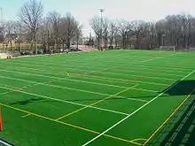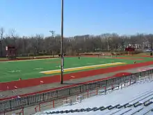 The North Bergen Bruins[3] compete in the Hudson County Interscholastic League, which is comprised of public and private high schools in Hudson County and operates under the supervision of the New Jersey State Interscholastic Athletic Association (NJSIAA).[24] With 1,852 students in grades 10-12, the school was classified by the NJSIAA for the 2019–20 school year as Group IV for most athletic competition purposes, which included schools with an enrollment of 1,060 to 5,049 students in that grade range.[25] The football team competes in the Liberty Red division of the North Jersey Super Football Conference, which includes 112 schools competing in 20 divisions, making it the nation's biggest football-only high school sports league.[26][27] The school was classified by the NJSIAA as Group V North for football for 2018–2020.[28] The North Bergen High School track, tennis, football and soccer teams use Bruins Stadium, which is located in James J. Braddock Park. The school's gymnasium serves as the home field for other sports.