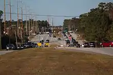 NC 132 was established in 1958 running along College Road from US 421 south of Wilmington to US 117 in Castle Hayne. College Road was a newly built two-lane road, bypassing downtown Wilmington to the east.[8][9] Between 1961 and 1963, College Road was widened to a multi-lane road between Shipyard Boulevard and Wilshire Boulevard.[10][11] NC 132 was further widened from Wilshire Boulevard north to Gordon Road in 1979.[12][13] The construction of future I-40 in Wilmington built a new interchange at Gordon Road, requiring NC 132 travelers to use the exit ramps from the freeway. NC 132 was briefly rerouted to run along the new freeway from Wilmington to US 117 south of Wallace. This left the northern section of NC 132 from the freeway to US 117/NC 133 in Castle Hayne as a secondary roadway.[14] In August 1984, NC 132 was removed from the freeway routing, and reinstated on its previous routing along College Road to Castle Hayne. The freeway became part of I-40, creating the short concurrency at the eastern end of the Interstate.[15] In 1993, the section of NC 132 from US 421 to Shipyard Boulevard was multilaned, becoming the last section south of I-40 to be multilaned.[16][17]