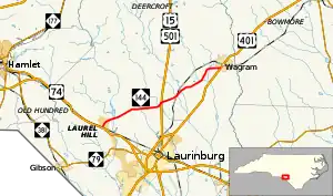 North Carolina Highway 144 (NC 144) is a primary state highway in the U.S. state of North Carolina. It runs from Laurel Hill to Wagram, in the North Carolina Sandhills.