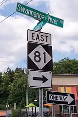 NC 81 begins at the intersection of All Souls Crescent (US 25 north), Hendersonville Road (US 25 south), and Vanderbilt Road in Historic Biltmore Village. It runs northward via Hendersonville Road for 0.3 miles (0.48 km), intersecting US 25A (Lodge Street) along the way. Immediately after crossing the Swannanoa River, it turns eastward on Swannanoa River Road, which closely tracks the path of the Swannanoa River. Westbound lanes of NC 81, however, are routed for 0.1 miles (0.16 km) via Bryson Street, which intersects Biltmore Avenue one block north of Swannanoa River Road. After 1.6 miles (2.6 km) NC 81 intersects US 74A (South Tunnel Road) near the Asheville Mall. It runs concurrent with US 74A for 1.2 miles (1.9 km) before US 74A turns southward onto Fairview Road. NC 81 continues to follow the Swannanoa River for another 1.1 miles (1.8 km) and then turns to the northward, ultimately terminating at US 70 (Tunnel Road) in Asheville's Oteen neighborhood.[2]