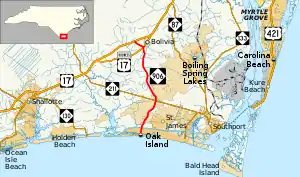 North Carolina Highway 906 (NC 906) is a primary state highway in the U.S. state of North Carolina. It serves as an access and evacuation route for Oak Island.