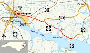 North Carolina Highway 92 (NC 92) is a primary state highway in the U.S. state of North Carolina. It runs through connecting Washington and Bath, entirely in Beaufort County.