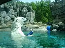The North Carolina Zoo is home to 1,700 animals of more than 200 species. It is home to one of the largest chimpanzee troops of any zoo in America[14] as well as the largest collection of Alaskan seabirds in the country. The Zoo is also one of only a few AZA (Association of Zoos & Aquariums) in the U.S. with a breeding pair of polar bears which is part of the Species Survival Plan. As of 2022, the pair have yet to produce any offspring.