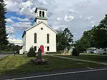 The North Chatham Free Library, at 4287 State Route 203,[4] is likely an important element of the community, but its not-very-historic building, constructed in 1958 and extended in 1995, caused it to be deemed a resource that is "non-contributing" to the historic character of the district. It is a one-story wood frame building with vinyl siding and a low gable roof. "A one-story addition was built at the west side of the building in 1995, its character and finishes in keeping with the original library building. There is a one-story wood entrance porch at the east entrance, a wood frame ramp for accessibility and a wood stair corresponding with the west entrance."[2]