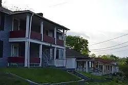 Danville North two story 1895 frame home built with other identical homes. It has a two-story full-width porch and dual entrances.