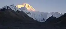 ![]() Everest's north face, lit up by the setting sun |
