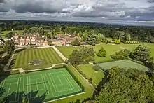 As a result of the Second World War, the school had to evacuate its premises in Kent, and it then had several temporary homes, including a hotel. After the War, in 1947, the school bought as a permanent home Sherfield Manor, which during the War had served as a military hospital, and continued to occupy it for more than fifty years, extending the buildings to more than 125,000 sq ft (11,600 m2).[5]