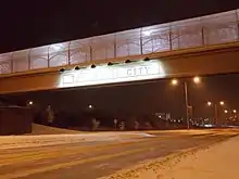 North Hill is home to Minot International Airport, the second busiest airport in the state, behind Hector International Airport in Fargo. In 2012, the airport had over 224,000 boardings, a record number, which was a sixty-six percent increase from 2011.[6] The airport is served by Allegiant, Delta, Frontier and United, which fly to Denver, Las Vegas, Minneapolis and Phoenix. The airport is currently in the planning stages of a construction project for a new terminal and airport expansion project. Alamo, Avis, Enterprise, Hertz and National have car rental counters at the Minot Airport.[7] Two local cab companies, Central Cab and Taxi 9000, also serve the airport.[8] The Magic City pedestrian bridge also connects the airport with the Grand International and the west side of North Broadway.