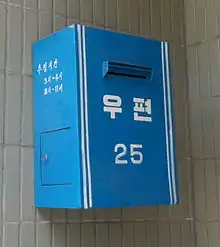 The North Korean Postal Service (Korean: 조선의 체신체계; MR: Chosŏnŭi ch'e*sinch'ekye) or Korean Post (Korean: 조선 우편; MR: Chosŏn upyŏn) is operated by the Ministry of Post and Telecommunications and Communication Maintenance Bureau, which oversees postal communications, telegrams, telephone services, TV broadcasts, newspapers and other related matters.[1]