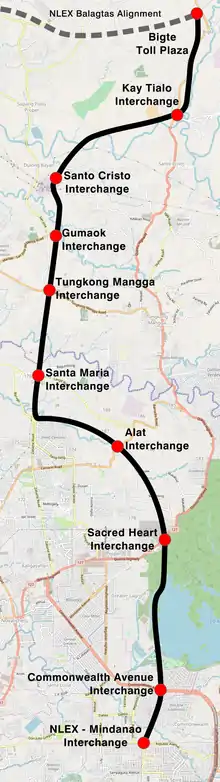 | From | North Luzon Expressway (R-8) in Guiguinto, Bulacan |