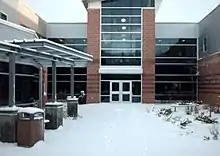 The school is built in a ring design, around a large central courtyard. Sections of the school, or "pods", are organized by course (English, mathematics, sciences, and history studies).