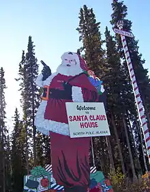 North Pole is a small city in the Fairbanks North Star Borough, Alaska, United States. Incorporated in 1953, it is part of the Fairbanks metropolitan statistical area. As of the 2020 census, the city had a population of 2,243,[2] up from 2,117 in 2010.[3] Despite its name, the city is about 1,700 miles (2,700 km) south of Earth's geographic North Pole and 125 miles (200 km) south of the Arctic Circle.