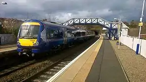 ![]() A class 170 stands at North Queensferry, awaiting a service to Glenrothes with Thornton | |
