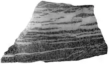 The North Star vein has an east and west course, with a dip of about twenty-three degrees to the north. This mine was opened by an incline shaft sunk on the course of the vein to a depth of nearly 700 feet (210 m). The lowest perpendicular depth attained was approximately 300 feet (91 m). It was opened by seven levels. The vein varied in thickness from a few inches to 4–5 feet (1.2–1.5 m), with an average of about 2 feet (0.61 m). The explorations in the fifth level extended about 700 feet (210 m) east of the shaft. The total known extent was estimated at 1,000 feet (300 m). The lower level was driven 550 feet (170 m) east of the shaft. Above the three lower levels, the ground was virgin to surface, and little was extracted from the two next to the bottom. The ore was raised by tram wagons on the incline, with a wire rope. The vein was enclosed in greenstone. A vertical hoisting and ventilation shaft was sunk 800 feet (240 m) east of the incline. This shaft was set to cut the mine on the level of the fourth gallery. The shoots of ore in this ground had an easterly pitch. The ore had a gradually increasing tenor of gold.[4]