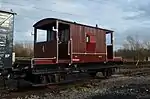The three ex-British Rail Mk1 carriages are used for the passenger trains. They were used on the Kings Cross suburban lines. They wear BR Midland Maroon Livery.[27] They were preserved by the Bluebell Railway between 1973 and 1975, and were obtained by the museum in 1986.[11][12][13]