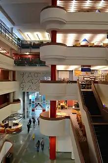 On November 24, 2016, the Toronto Public Library announced that the branch would be closed until early 2017 for renovations. The last day of service for the branch was December 4.[8] In February 2017, it was announced that the library would remain closed for the remainder of the year to complete more renovation work. The first two floors of the main library re-opened to the public in summer 2018, with the rest of the floors being reopened in phases.[9] While the branch is closed, the library has opened a temporary pop-up location in the concourse level of the adjacent mall.[10]