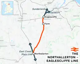 The Northallerton–Eaglescliffe line runs between Northallerton and Eaglescliffe stations. It connects the East Coast Main Line to the Tees Valley Line. It was built by the Leeds Northern Railway as part of their main line from Leeds to Stockton (via Harrogate and Ripon) which opened on 2 June 1852,[1] although the connection to the ECML at the Northallerton end was not opened for a further four years.