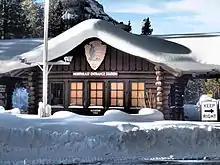 The Northeast Entrance Station to Yellowstone National Park, in Park County, Montana, is a rustic log building designed by the National Park Service Branch of Plans and Design under the direction of Thomas Chalmers Vint and built in 1935.[3] The entrance station straddles U.S. Route 212 (US 212) west of Silver Gate. A combined ranger station and residence is located nearby. All buildings were constructed by George Larkin of Gardiner, Montana.[4]