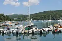 The Marina is home to upwards of two hundred yachts during the summertime, and has views looking out over the cove.