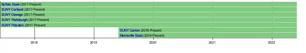 | State University of New York at Potsdam | Potsdam, New York | Bears | 1816 | Public | 4,325 | 2017 |