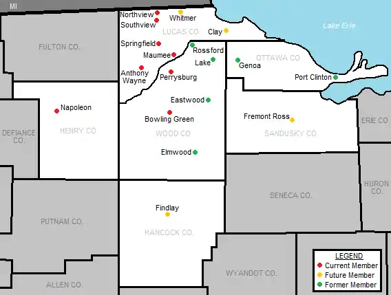 On April 9, 2021, invitations were extended to four schools that are currently members of the Three Rivers Athletic Conference, starting with the 2023-2024 school year: Findlay, Fremont Ross, Oregon Clay, and Whitmer.[1]