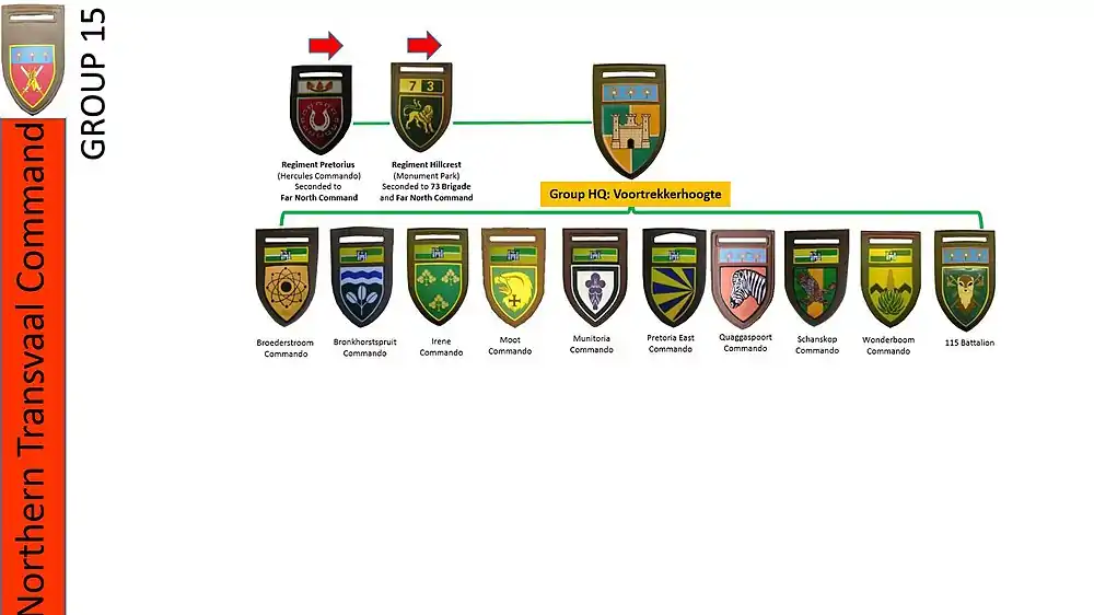 Its headquarters was in Pretoria, and within its command boundaries, it contained a number of important Active Citizen Force field formations, notably 81 Armoured Brigade (part of 8th South African Armoured Division). Depending upon the command boundaries, it may also have included 72 Motorised Brigade with its headquarters at Johannesburg and 73 Motorised Brigade with its headquarters in the Johannesburg suburb of Kensington.