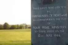 On 12 May 1944, four prime ministers visited the troops in Northiam who were preparing for D-Day in Normandy. The village field gates were erected to commemorate the visit. The four prime ministers were: