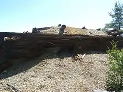 Before the operation of Northland Pyrite Mine in the early 1900s, water levels of James Lake increased and decreased.[1] The cause of this alternation could have been caused by beavers building dams in the lake's outlet, eventually causing the water levels to rise.[1] This rise in water levels began to cease in 1906 when operations of the Northland Pyrite Mine began to dump volcanic waste rock along the southwestern shore of James Lake.[1] This began with the construction of the 91 m (299 ft) shaft and the several open-cuts north of the shaft, but the mine site was originally discovered in 1903.[2] Erosion of the volcanic waste rock resulted in the development of acidic lake wastewaters next to the waste pile, causing organisms around the mine to disappear.[1] The name Harris Mine was coined for Northland Pyrite Mine by E.L. Fraleck in 1907 when Northland was actively operating for a year.[2]