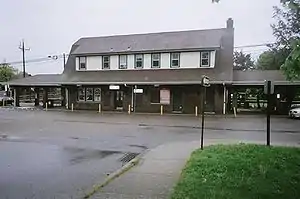 It was designed in a manner similar to stations such as those in Riverhead, Bay Shore, Manhasset, and Mineola. It also served as the south end of a trolley Line into Northport from 1902 to 1924.[5][6] A freight house from Camp Upton was moved to Northport station in April 1922, after the railroad station there was dismantled. A high-level platform and a pedestrian bridge were added during the late 20th century. Northport station features two large parking lots; the larger lot is adjacent to the platform and the smaller lot is on the opposite side of the track. The pedestrian bridge connects the lots, and is wide enough to accommodate a second track and second platform.