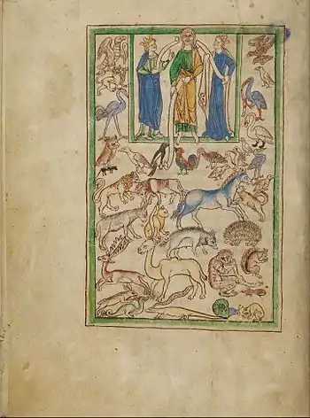 The Northumberland Bestiary is an illuminated manuscript bestiary, dating to around 1250-1260 and containing 112 miniature paintings. It may have been produced in northern England - its miniatures are directly inspired by a 1200-1210 bestiary now in the British Library (Royal MS 12 C XIX).[1][2]