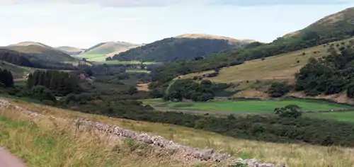 The Northumberland National Park covers a large area of Western Northumberland and borders the English county of Cumbria and the Scottish council area of The Scottish Borders. The national park encompasses much of the Cheviot Hills and adjoins the Southern Uplands of Scotland, which the hills are sometimes considered a part of. Since the Pennine Way runs through the national park, the Cheviot Hills are also considered a part of the northern Pennines although they are separated from the Cheviot Hills by the Tyne Gap, part of which lies within the southern extent of the national park. Part of Kielder Forest lies within the park, and in other areas forms a forest park. Kielder Forest is the largest man-made forest in Europe and surrounds Kielder Water.[1][2]