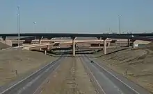 The Northwest Parkway begins as a continuation of E-470 westward. Following a stack interchange with I-25,[2] the parkway crosses Huron Street in suburban Broomfield, surrounded by fields. After intersecting Sheridan Parkway, the route passes a small pond, followed by an underpass with Lowell Boulevard. Near Dillon Road, the parkway interchanges with US 287 in Lafayette before reentering Broomfield near the end of the toll portion at 96th Street.[2] The parkway continues untolled for one last mile (1.6 km) before terminating at an interchange with US 36.