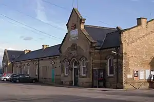 The station expanded as the railway grew and by 1910 there were three platform faces, a bay for loading cattle, extensive goods sidings with a five-ton crane and a goods station.[4][5][6] The CMR built a two-lane engine shed and turntable in 1869, the shed was doubled in size in 1877 and rebuilt around 1948 before closing to steam engines in 1968 and diesel in 1982.[4][7]